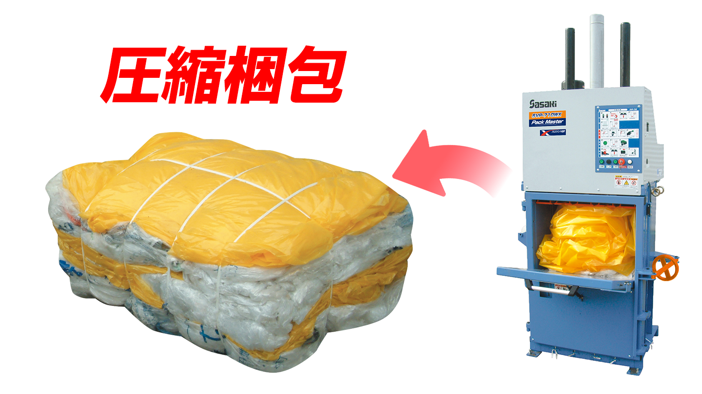 かさばる廃棄物を圧縮してコンパクトに梱包することで省スペースで保管でき、回収にかかる費用も削減できます。