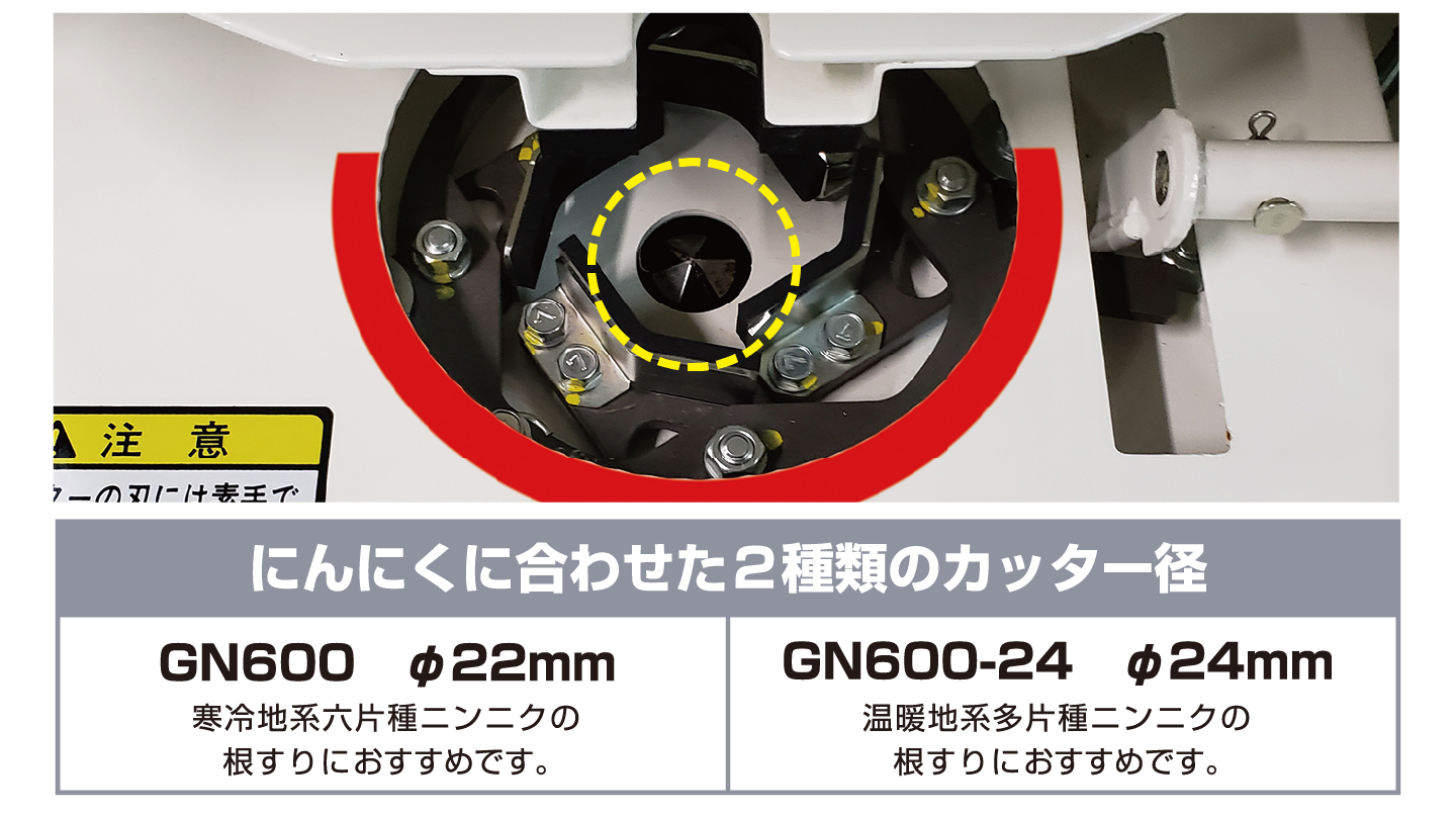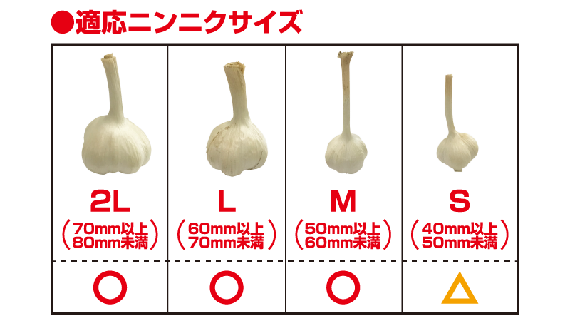 にんにくに合わせた2種類のカッター径をご用意しております。