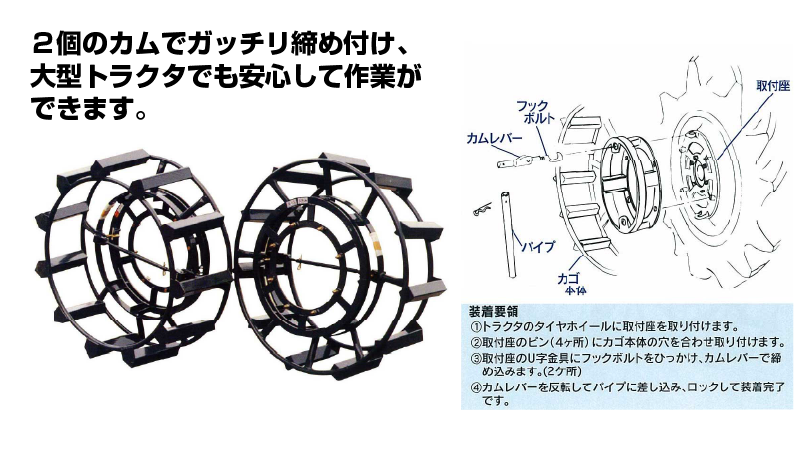 ※トラクタにより取付座が異なりますので、お問い合わせの際にはトラクタの型式名・タイヤサイズをお知らせください。