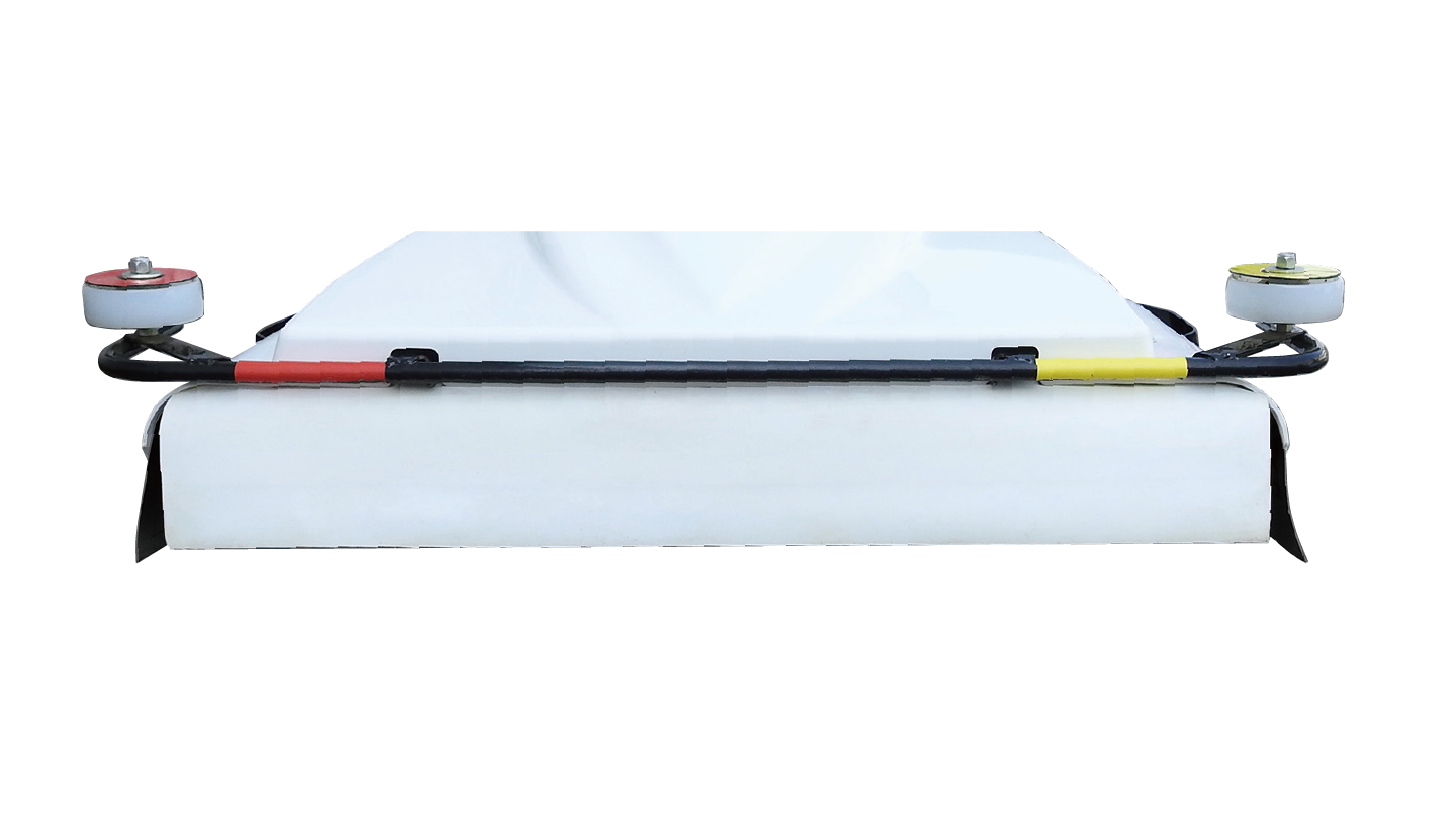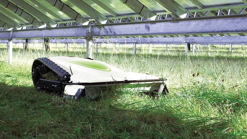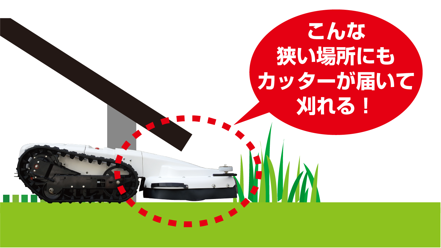 草刈アタッチは走行ユニットの全高よりも低いので、前後に操作することで、狭い隙間下の草刈をすることもできます。