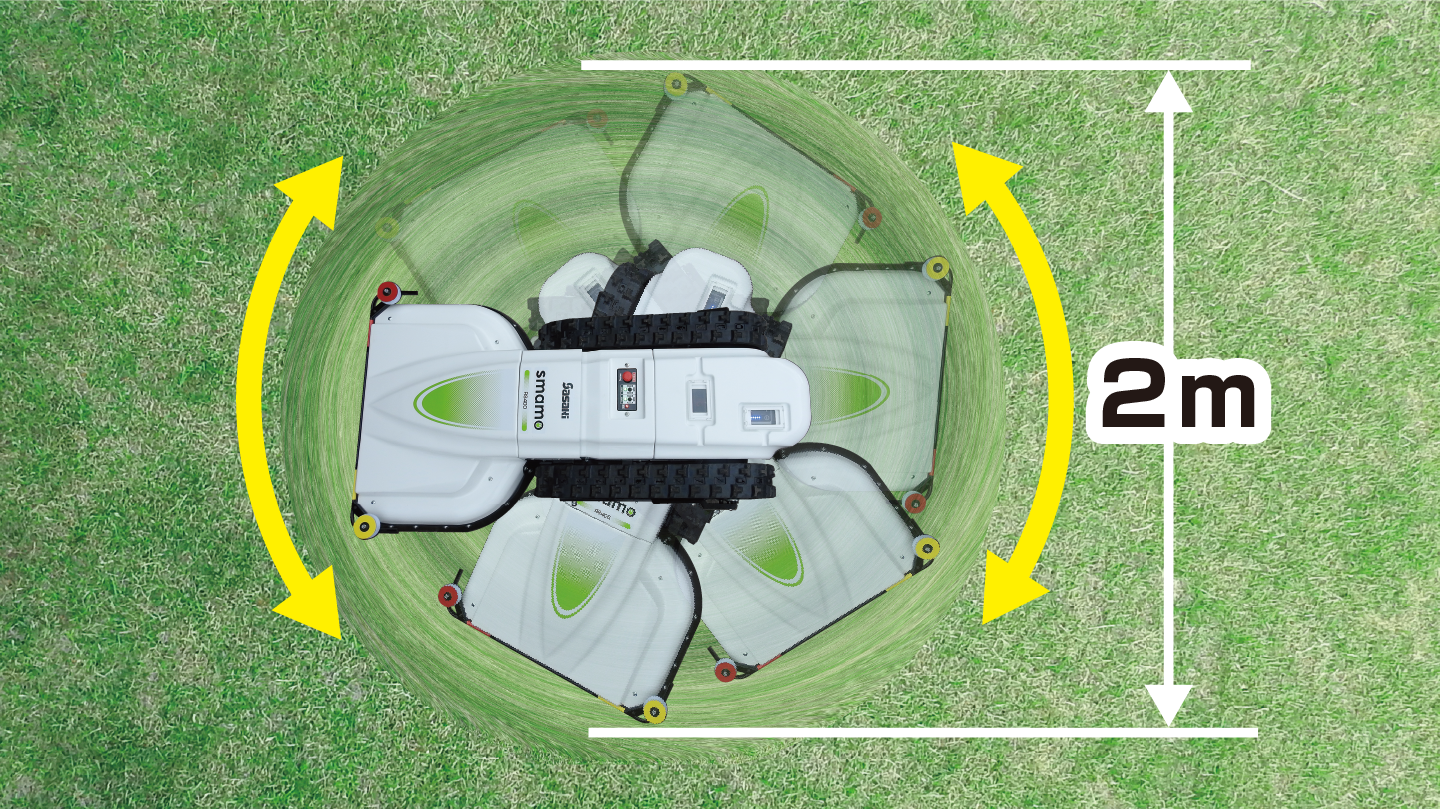 スマモは超信地旋回(その場旋回)ができ、わずか直径 2m の狭い範囲で、右・左どちらでも旋回ができます。