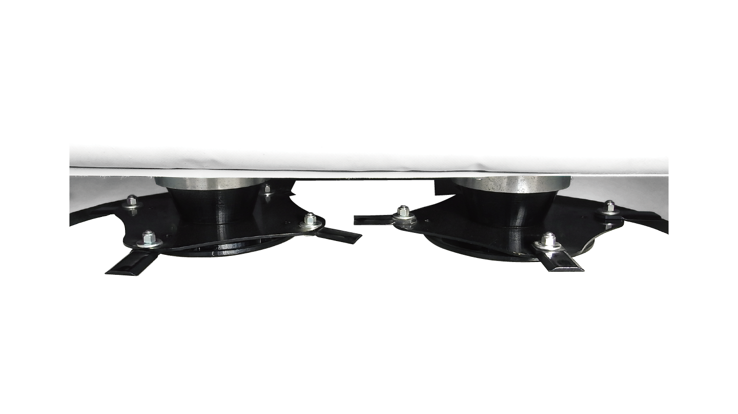 左右のナイフが交差し、草をきれいに刈取ります。フリーナイフは小石等が当たっても衝撃を和らげます。