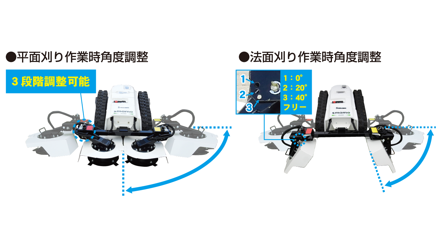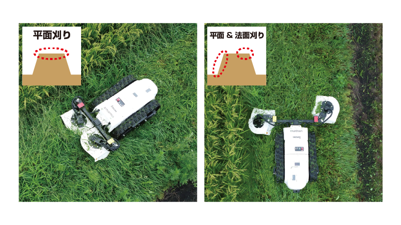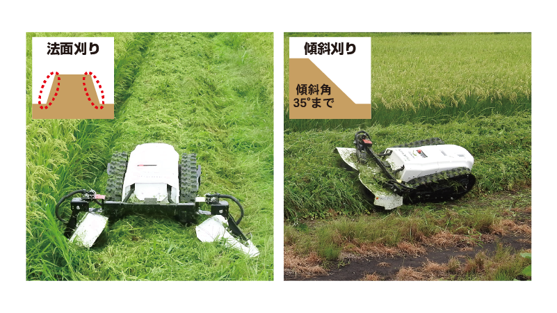 刈取部のポジションを調整することができるので、水田の畦の上面や法面の草刈りができます。